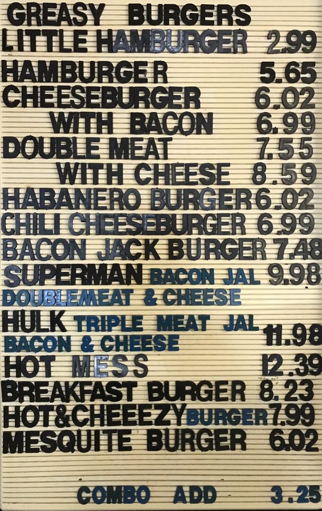 Top of the Hill - Greasy Burger Menu (Update 2025)