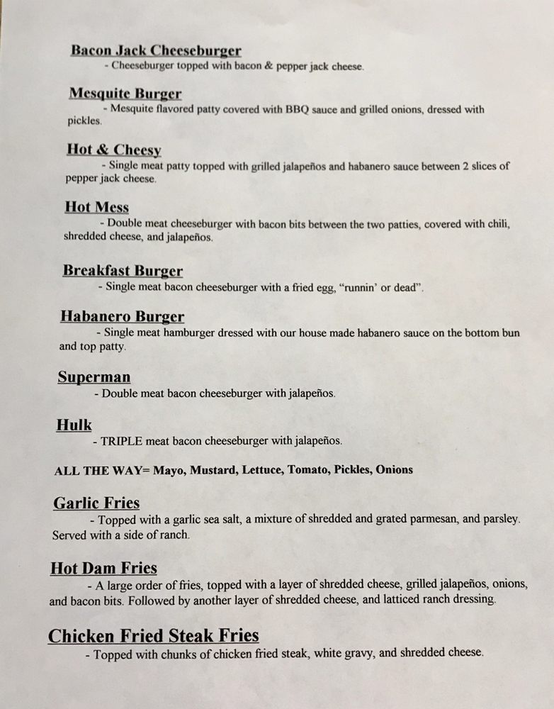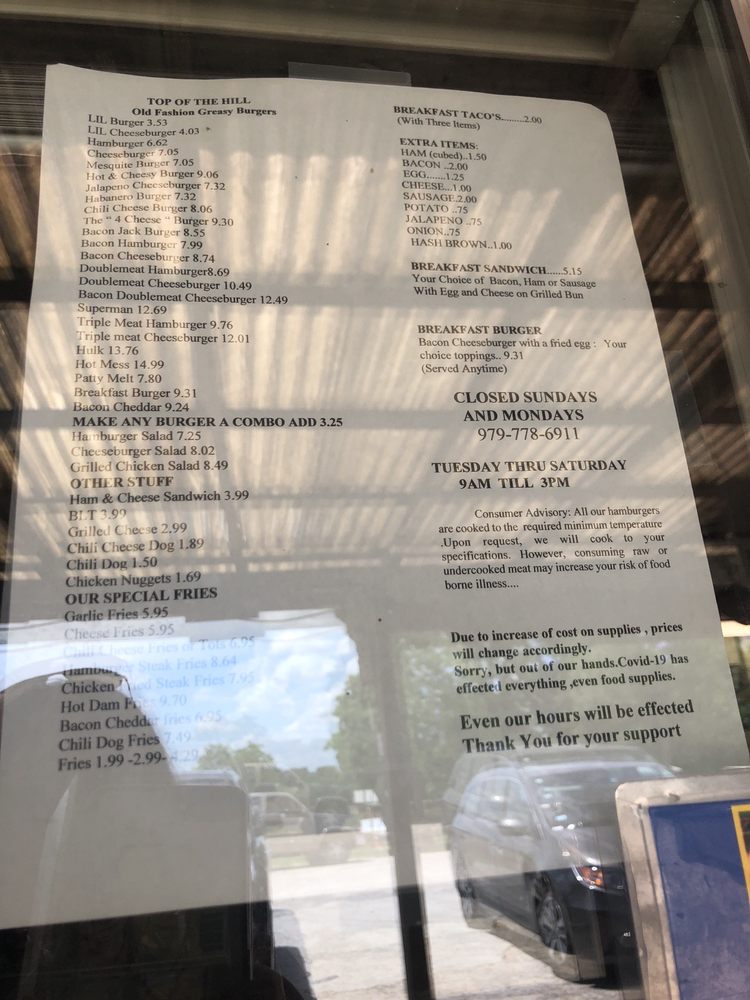 Introducing the menu of Top of the Hill - Greasy Burger: Located in Bryan, TX, this casual American eatery offers a variety of mouthwatering burgers, salads, and options for kids. With rave reviews praising their juicy burgers like the Superman with all the fixings and the Cheeseburger Salad, along with signature sides like the Smokehouse Fries and Bacon Cheddar Fries, this spot is a must-visit for burger lovers. Customers also appreciate the friendly staff and down-home atmosphere, making it a great place to grab a delicious meal. Don't miss the chance to try their unique dishes like the garlic burger with garlic aioli and the tempting cheesecake brownies. Top of the Hill - Greasy Burger is a gem in the heart of Texas that promises a satisfying dining experience for all.